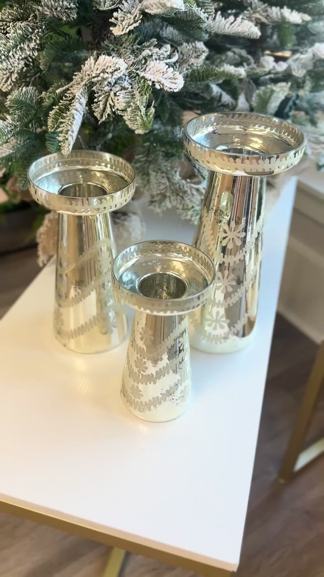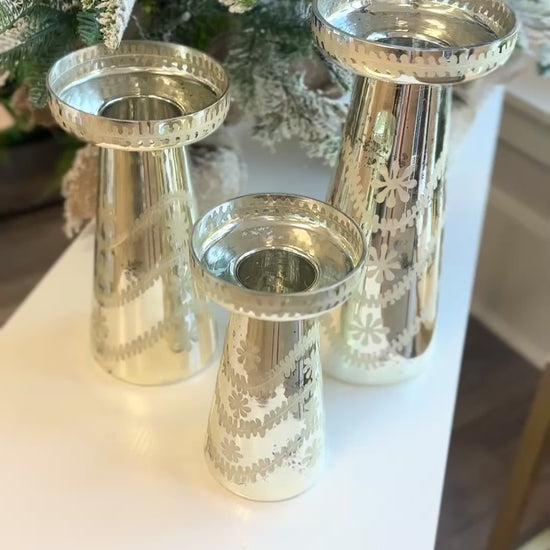 Etched Mercury Glass Candle Holders, 3 Sizes