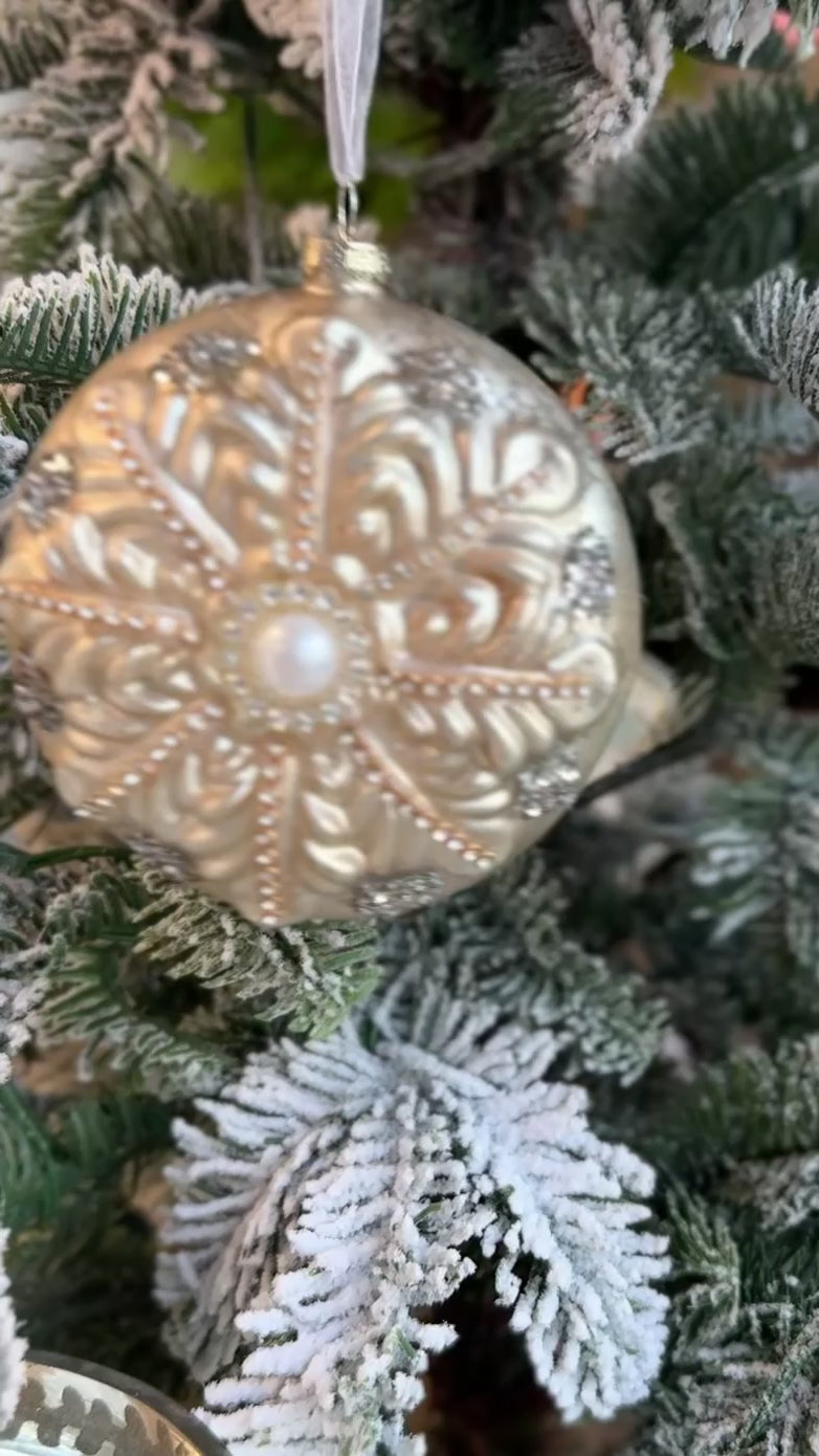 Fleurs Pattern Pearl Glass Ornament