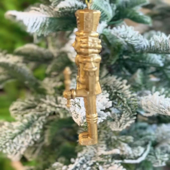 4.5" tall. Metalic gold nutcracker made of durable resin.